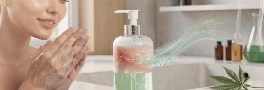 Lors de l’utilisation d’un savon liquide au CBD, le contact bref mais répété avec la peau permet une interaction régulière du cannabidiol avec ce système endocannabinoïde cutané. Bien que le temps de contact soit plus court qu’avec une crème ou un sérum, l’exposition quotidienne, parfois biquotidienne, crée une forme de « micro-dosage » continu. Pour optimiser cet effet, les formulateurs travaillent sur la taille des particules de CBD et sur la viscosité du savon, afin de favoriser une bonne répartition sur la surface de l’épiderme et une diffusion rapide dans les couches superficielles.